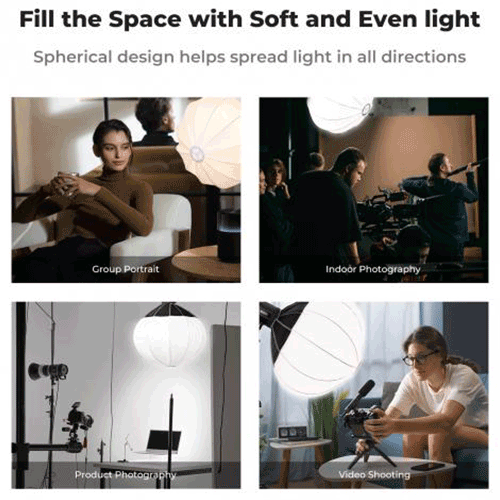 نور ملایم ۳۶۰ درجه: این محصول کی اند اف K&F طراحی کروی این محصول باعث می شود کل فضا با نور نرم و یکنواخت پر شود.